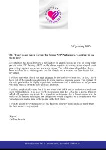 Les réclamations, qui ont été publiées dans de nombreux médias le 29 janvier 2025, suggèrent qu’une affaire de fraude de 800 000 GH ¢ a été déposée contre lui, et un mandat de banc a été émis pour son arrestation.