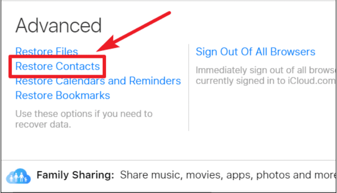 • Si votre contact supprimé n’apparaît pas, accédez à Paramètres > Avancé dans iCloud et cliquez sur Restaurer les contactsSélectionnez une version archivée dans la liste et cliquez sur Restaurer.