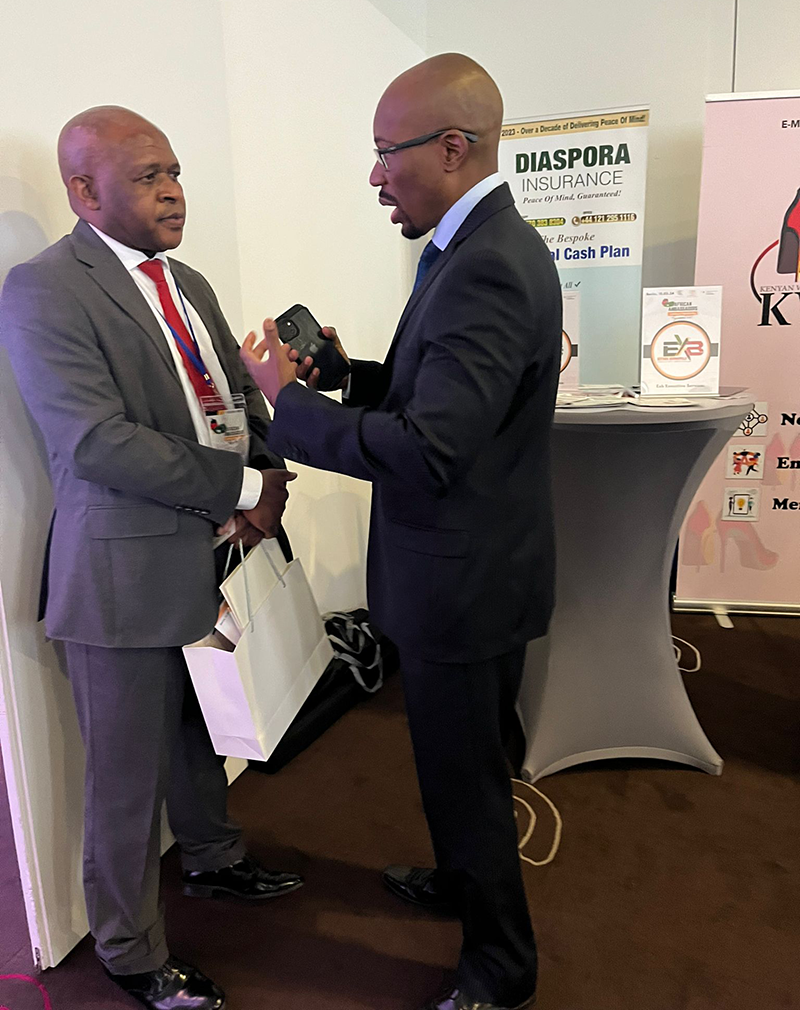 Diaspora Insurance était représentée par le Dr Sibert Mandega, Esther Bornefeld et Vivian Onzere. Le Dr Sibert Mandega, directeur exécutif de Diaspora Insurance, a souligné les difficultés auxquelles les diasporas africaines sont confrontées lorsqu'elles s'installent dans de nouveaux pays. L'intégration dans le pays d'accueil peut être difficile. La plupart des diasporas sont vulnérables en matière d’assurance, car la plupart des produits d’assurance sont conçus uniquement pour les consommateurs locaux. Cela entraîne des souffrances indicibles au sein de la communauté de la diaspora africaine si quelqu’un perd un être cher au sein de la diaspora.
